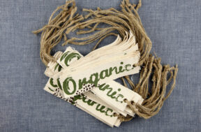 “Eco”hang tags come pre-printed on one side of 100% Recycled Paper with attached hemp twine cord. One side is blank. Use as a clothing tag/product label. Material suitable for custom printing – i.e. logo or product description.
